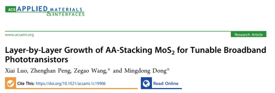 相关成果以“Layer-by-layer Growth of AA-stacking MoS2 for Tunable Broadband Phototransistors” 为题发表在著名期刊《ACS Applied Materials & Interfaces》上(中科院一区,川大B刊,影响因子9.229)。论文第一作者为3044am永利集团3044noc3044am永利集团3044noc2018级本科生罗夕艾,我校王泽高特聘研究员、丹麦Aarhus University董明东教授为共同通讯作者,3044am永利集团3044noc2018级本科生彭正瀚参与了该成果。论文第一通讯单位为3044am永利集团3044noc3044am永利集团3044noc。