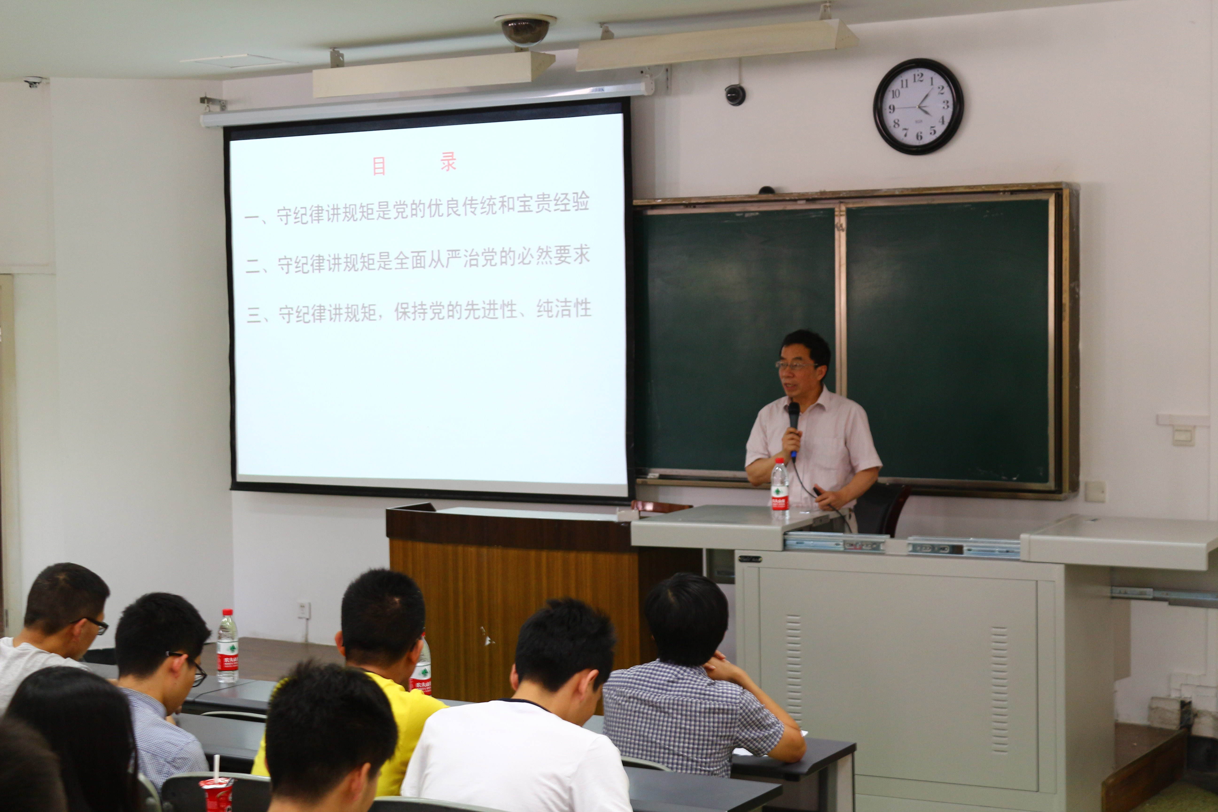十八大以来,加强党风廉政建设和反腐败斗争是当前一项重要的政治任务,也是一项必须长期坚持的工作。大学生和研究生党员是我党的新鲜血液,是党和国家的未来和希望。为了响应我党建设廉政之风的号召,也为了在这些青年党员的身上坚决抵制腐败的风气和苗头。2015年05月08日16:00时,永利集团官网特邀院党委书记朱建国教授为3044am永利集团3044noc全体学生党员做了一场“守纪律,讲规矩”的主题报告,报告会由学院党委副书记唐世红书记主持。