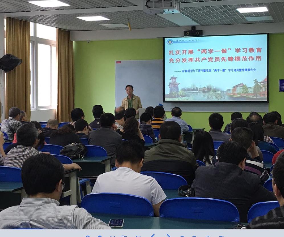 接下来,尹院长结合学院的教学、科研工作的开展情况,讲解了学院“两学一做”学习教育活动的主要内容和主要措施,按照中央要区分层次、有针对性地解决问题的要求,对普通党员和处级以上领导干部提出不同的学习要求。对普通党员,要把学习党章党规与学习习近平总书记系列重要讲话精神统一起来,在学系列讲话中加深对党章党规的理解,在学党章党规中深刻领悟系列讲话的基本精神和实践要求;对学院中层以上党员领导干部要在学习教育中作出表率,紧密联系领导工作实际,学得更多一些、更深一些,要求更严一些、更高一些,努力提高思想政治素质和理论水平。按照学校的总体时间要求,分四个时间段完成各阶段的学习和教育任务,学习讨论要紧密结合现实,联系个人思想工作生活实际,通过学习讨论,真正提高认识,找到差距,明确努力方向。党员领导干部要按照政治家、教育家要求,做信念坚定、为民服务、勤政务实、敢于担当、清正廉洁的好干部;教师党员要自觉践行“四有”好老师标准,自觉爱党护党为党,敬业修德,带头践行社会主义核心价值观,不断提高业务能力和教育教学质量,做学生健康成长的指导者和引路人。