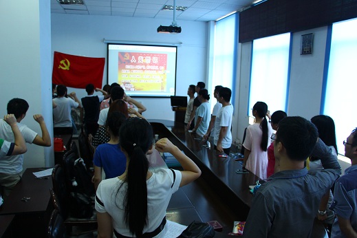 2016年7月1日中午12:30在3044am永利集团3044noc会议室,学院博士支部和2015级硕士支部联合开展“重温入党志愿、重温入党誓词”主题党日活动如期举行。博士支部党支部书记韩纪梅老师、2015硕士支部书记王娇老师和两个支部党员一起回顾了中国共产党自1921年建党至今已经走过的95周年的历史,95年来,中国共产党领导全国各族人民取得了革命、建设和改革事业的辉煌成就。中国共产党90多年的发展实践证明,办好中国的事情,关键在党,重点在党。以“党要管党、从严治党”为重要内容的党的建设是我们党取得政权的重要法宝,是我们取得改革开放巨大成就的重要前提,也是我们实现中华民族伟大复兴“中国梦”的坚强保证。党的十八大以来,习近平总书记发表了一系列重要讲话,提出了许多新思想、新观点、新论断,体现了以习近平同志为总书记的党中央治国理政的理论创新,丰富和发展了中国特色社会主义理论体系,指引着党和国家未来的发展方向。现在我国广大人民群众正走在实现中华民族伟大复兴的中国梦的征程上,全体研究生党员一定要努力学习科学文化知识,积极投身科研工作,为建设一流大学、一流学科、建设创新性国家做出党员应有的贡献!全体党员举起右拳、面向党旗重温入党誓词!宣誓之后在举行的座谈会上,在场党员联系自身工作实际,围绕“入党为什么、在党干什么、给党留什么”纷纷发言,增强爱党信党护党的思想和行动自觉。
