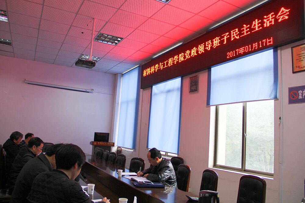 2017年1月17日下午,3044am永利集团3044noc在学院会议室召开2016年度学院领导干部民主生活会。校纪委范洪远副处长莅临会议进行工作指导,学院全体院领导、国家生物医学材料工程技术研究中心党总支书记和副书记参加了民主生活会。会议由3044am永利集团3044noc党委书记朱建国教授主持。