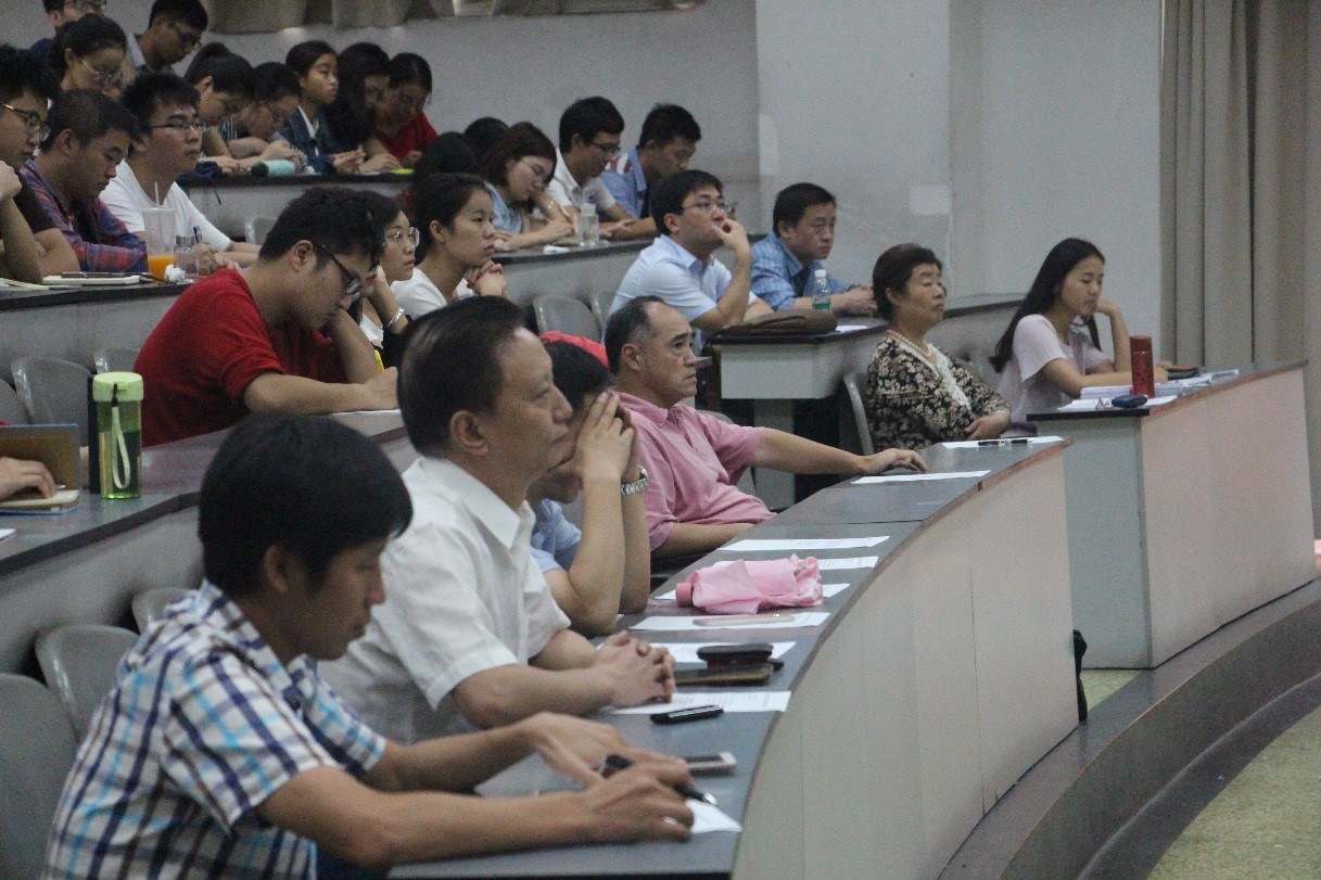 朗朗金秋,丹桂飘香,9月15日下午2点,3044am永利集团3044noc2017级硕博新生开学典礼在基础教学楼C104隆重举行。出席开学典礼的有3044am永利集团3044noc党委书记尹光福老师,3044am永利集团3044noc院长刘颖老师、党委副书记唐世红老师、材料科学系主任张静全老师、金材系主任黄维刚老师、新能源系主任陈云贵老师,无机与生医系副主任邹远文老师、学生科长兼团委书记硕士辅导员王娇老师、学籍管理老师胡英、曾栌贤、教师代表吴家刚老师以及17级全体研究生。
