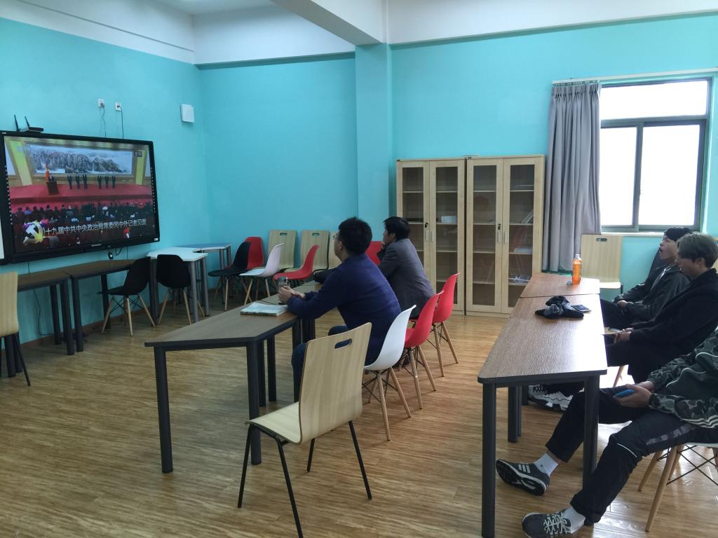 此外,在学院办公室、学生宿舍、学校教室、食堂等收看点,学院广大党员干部、师生员工,都抱着无比激动的心情收看了直播。大家一致认为,新一届中央领导集体的产生,体现了全党意志,反映了全国各族人民的心愿,对新一届中央领导集体充满信心。大家一致表示,坚决拥护新一届中央领导集体,一定站在新的历史起点上,高举习近平新时代中国特色社会主义思想伟大旗帜,认真学习贯彻党的十九大精神。