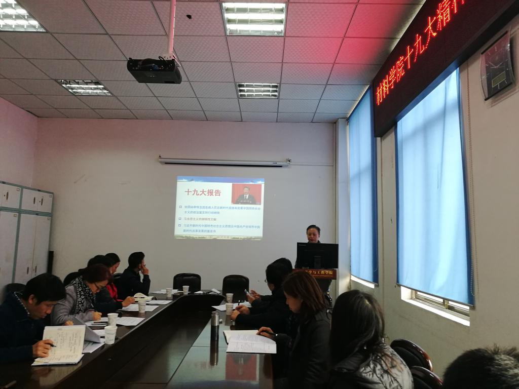 2017年11月29日下午14:30,3044am永利集团3044noc党委在学院会议室召开十九大精神宣讲支部书记培训会。学院全体党支部书记参加了会议。会议由学院党委书记尹光福教授主讲。