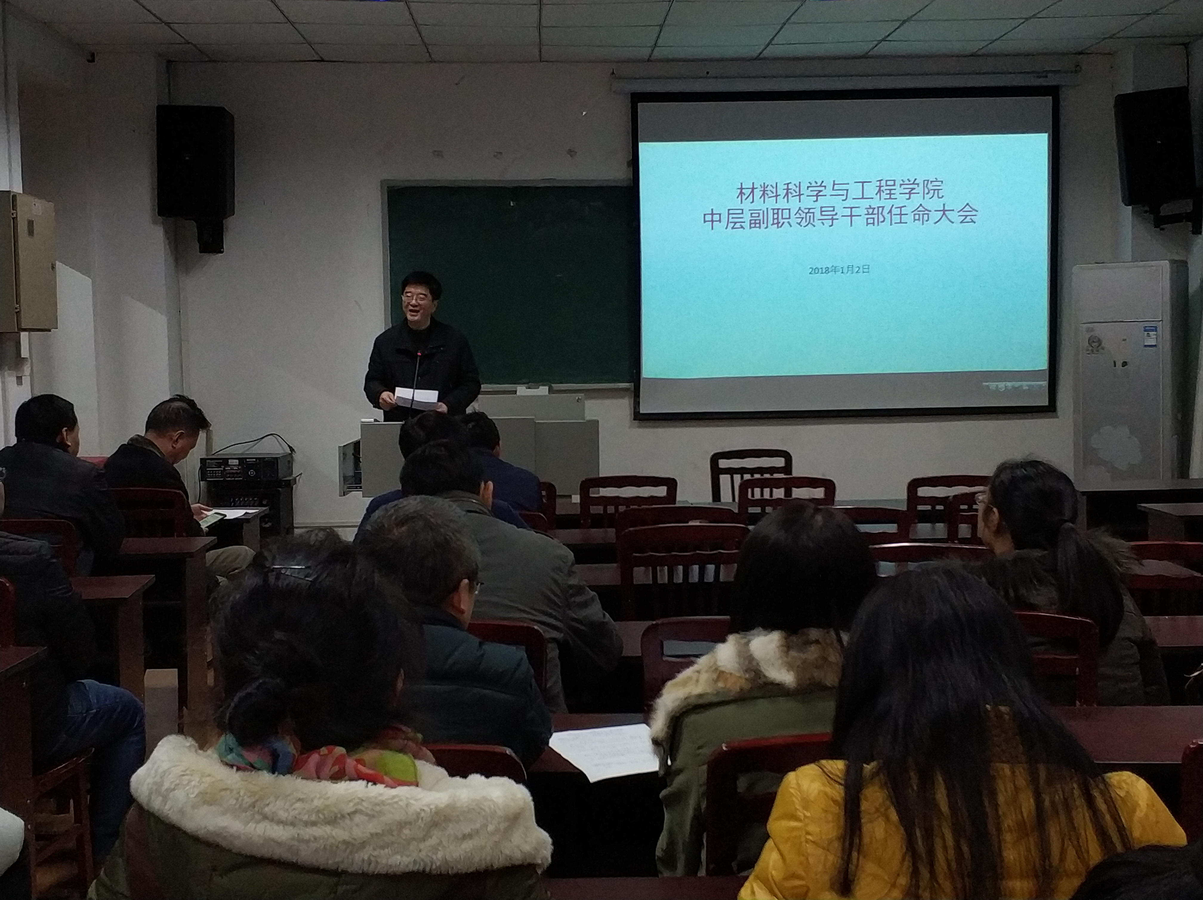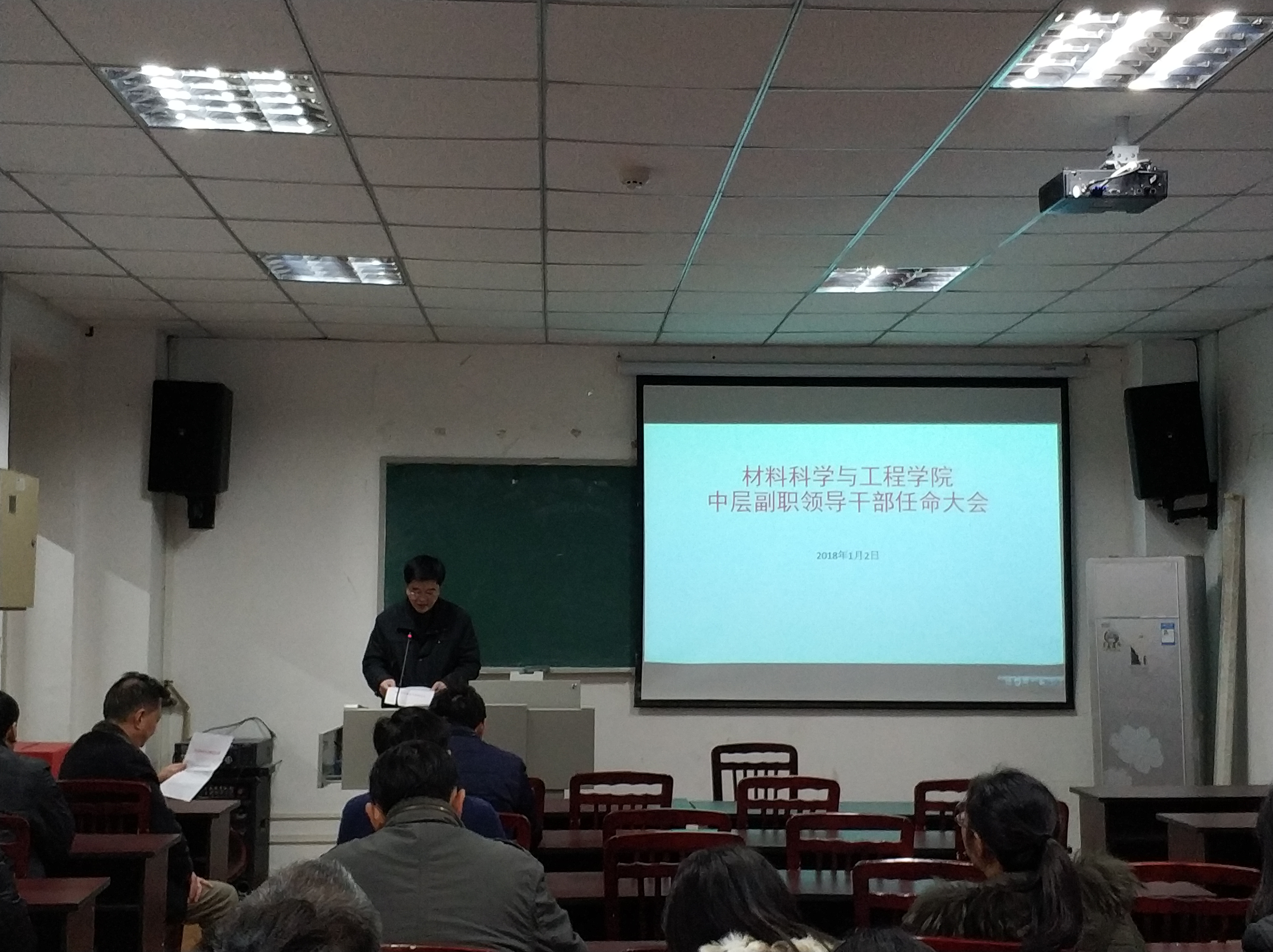 2018年1月2日下午4:30,3044am永利集团3044noc在第一理科楼209召开了中层副职干部任命大会,全体在职教职工参加了会议,校党委副书记李旭锋教授出席大会并发表讲话,会议由学院党委书记尹光福教授主持。
