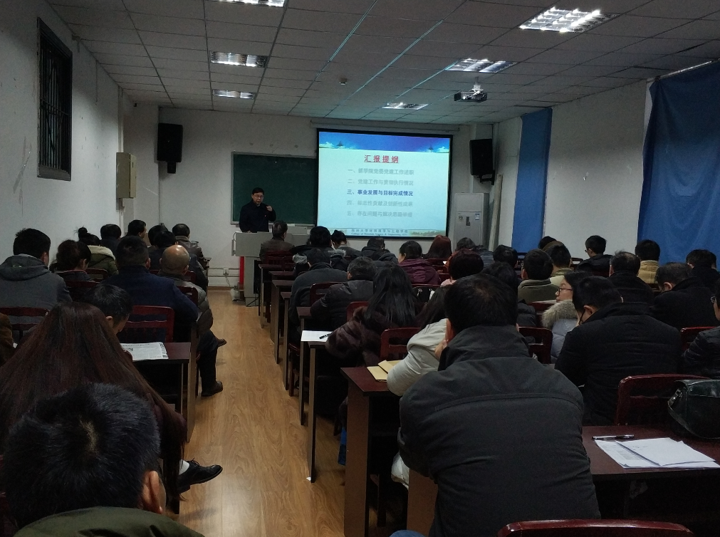 会议伊始,尹书记代表学院领导班子从抓学院党委党建工作述职和党建工作与贯彻执行情况两个方面向学院教职工介绍了永利集团官网2017年度的党建工作。尹书记指出在学校党委的领导下,永利集团官网按照全面从严治党的要求,紧紧围绕中心抓党建,以抓好党建促发展。