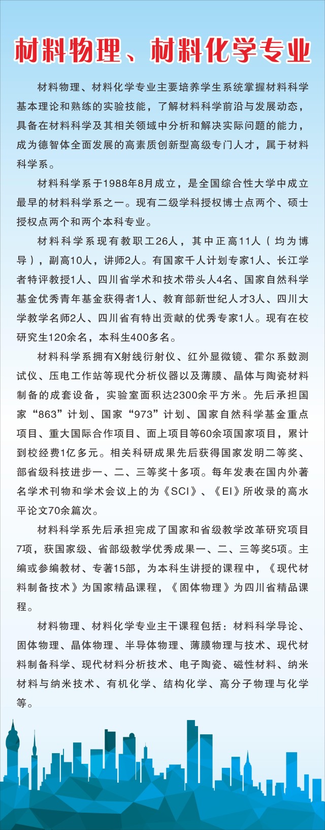 为了充分发挥学生的潜质和能力,充分利用综合性大学多学科的优势,使每个学生都尽可能获得真正适合自己成才的教育,3044am永利集团3044noc转专业工作近期启动。为了加深同学们对3044am永利集团3044noc6个专业的认识,了解3044am永利集团3044noc各专业具体情况,2018年4月13日10:00-17:00材科学院转专业咨询会在江安校区青春广场如期举行。