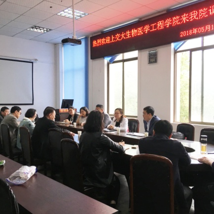 5月11上午9:00,上海交通大学生物医学工程学院副书记周申申、院长助理白景峰、特聘教授魏勋斌、特聘研究员李海燕、党政办主任沈琴一行6人来永利集团官网调研,永利集团官网党委书记尹光福、副书记张晓满、副院长林江莉和吴家刚、无机生医系主任芶立、无机生医系支部书记黄忠兵、副系主任邹远文老师参加了本次调研座谈会。