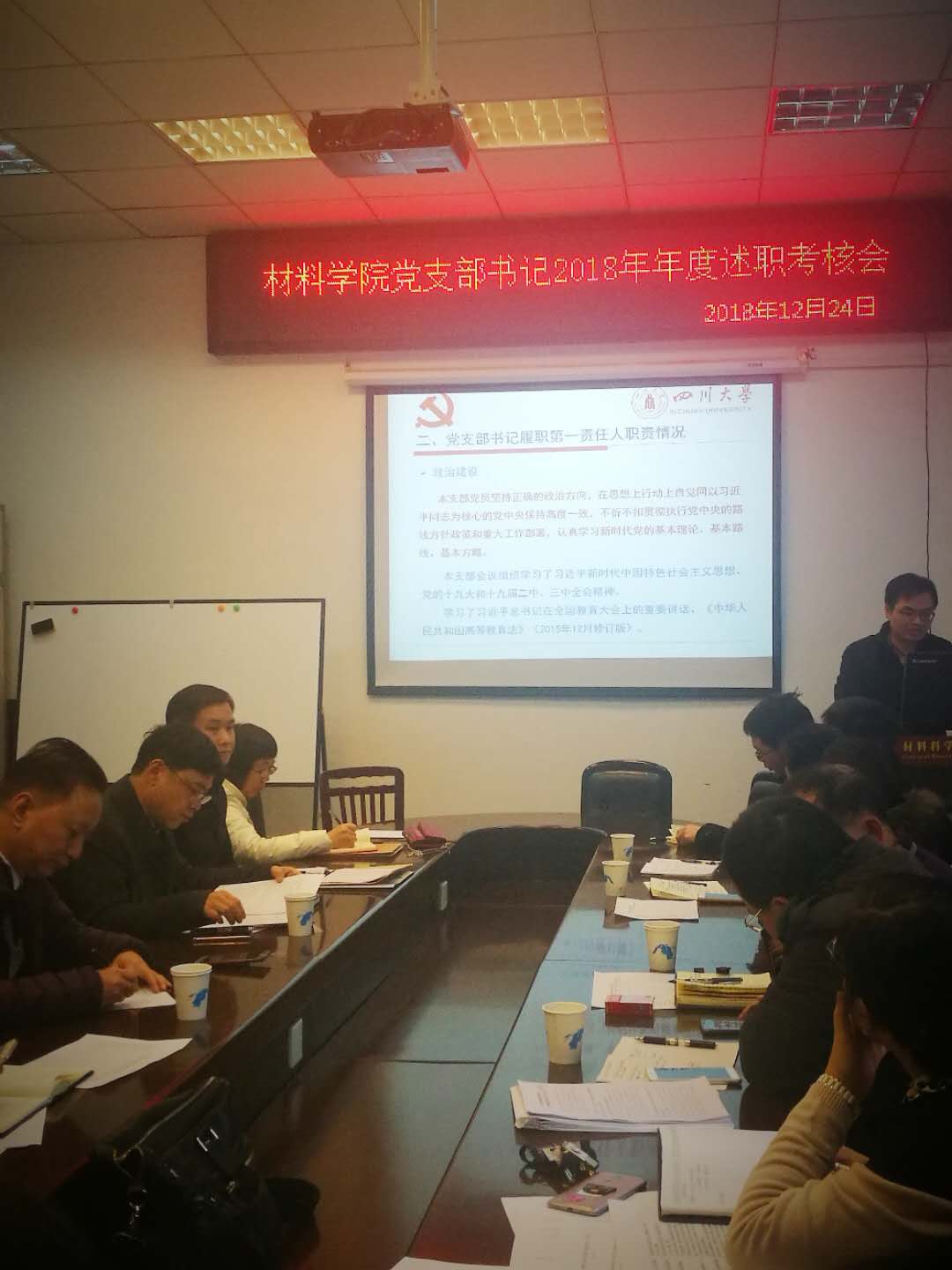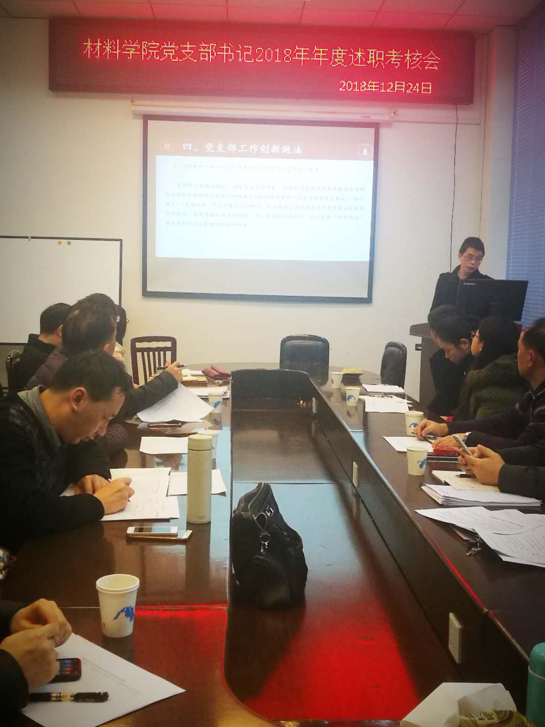 2018年12月24日11:00,永利集团官网党支部书记年度述职考核会在第一理科楼3044am永利集团3044noc会议室召开,永利集团官网党委书记尹光福,院长刘颖,党委副书记张晓满及各支部书记、副书记参加了此次述职考核会,会议由党委书记尹光福教授主持。