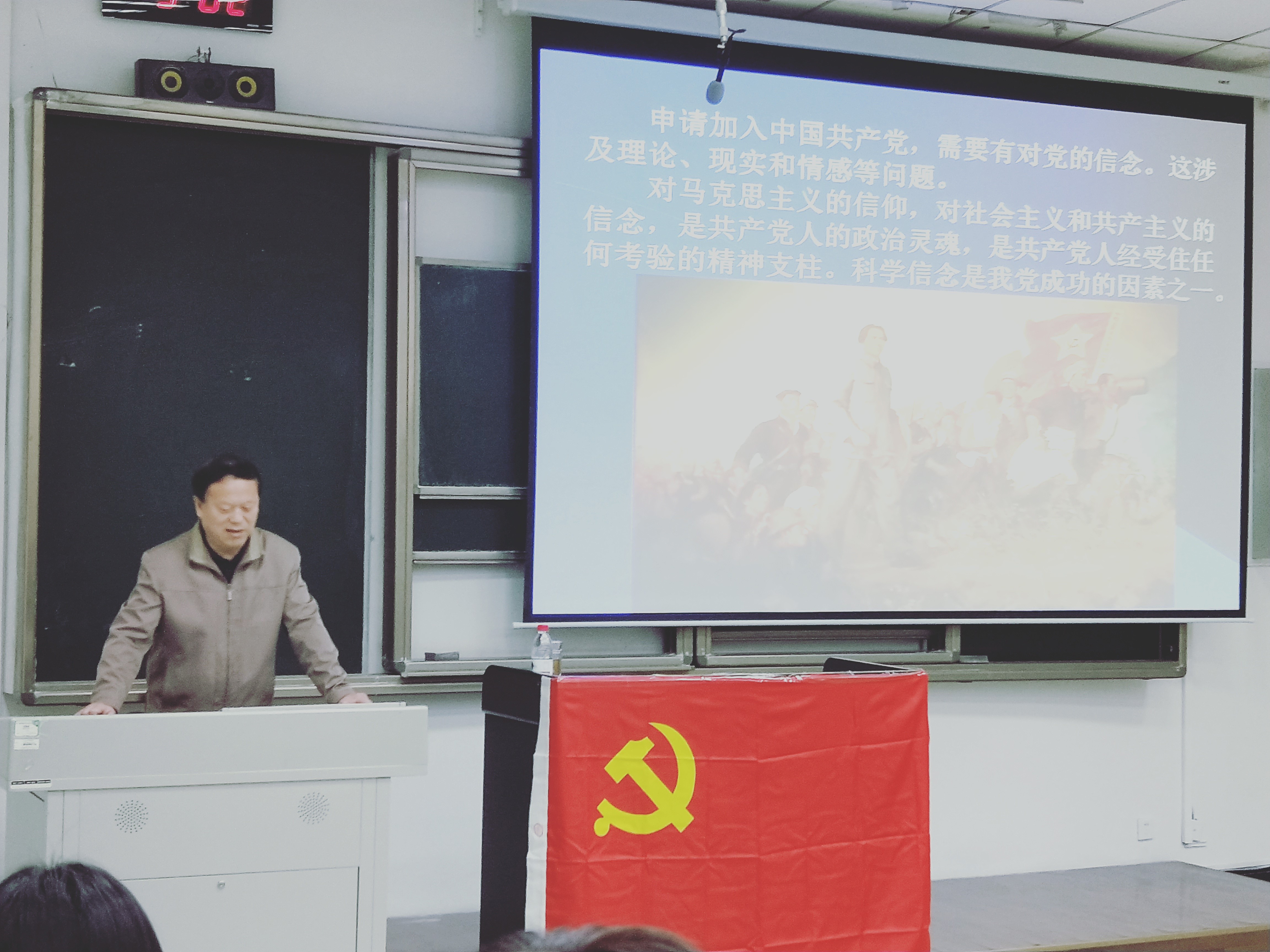 吴老师先通过举朱德同志、周恩来同志、陈毅同志等为例,说明了老一辈共产党人对党的坚定信念是我们的榜样。并且认为当代青年入党应特别解决好对党的信念问题。信念有无形的力量,为了追求既定的目标和方向,人们可以竭尽全力,甚至是献出生命,共产党员更是这样,应该为了实现共产主义而奋斗。除此之外,同学们也要意识到认识现阶段奋斗目标与实现共产主义的必然联系及其艰巨性复杂性,因此要求党员既要树立共产主义信念,坚信共产主义必然要实现,又要在现阶段为党的事业奋斗。