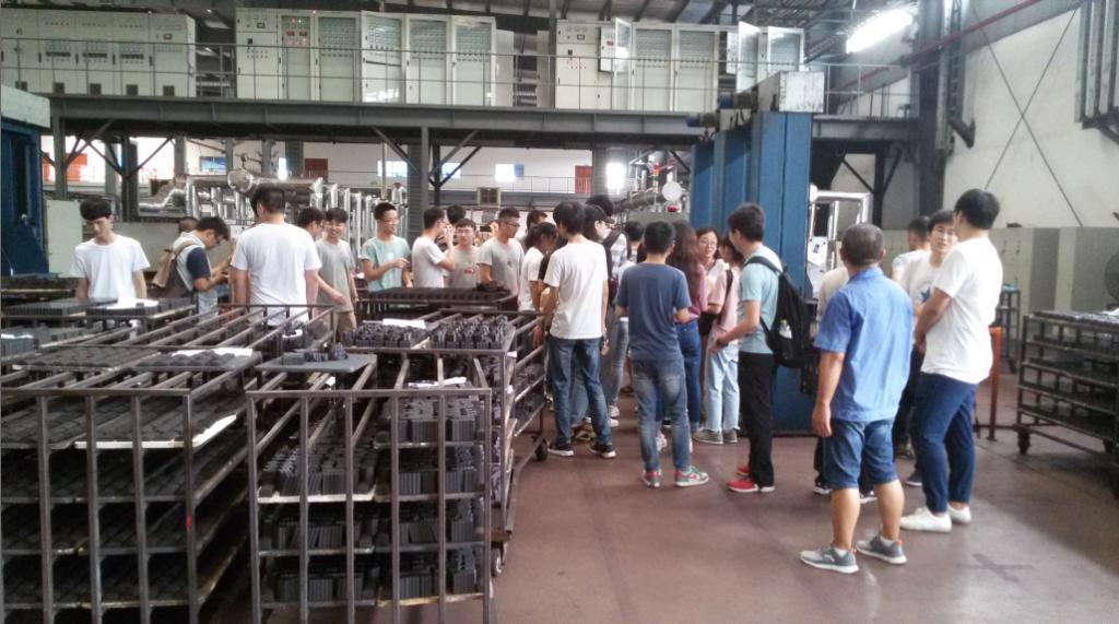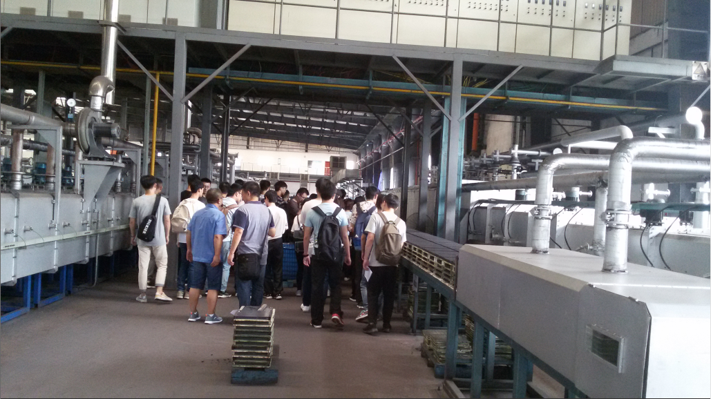 材料化学的同学们及带队老师于7月16日从3044am永利集团3044noc乘坐大巴前往宜宾,并在17日正式开始实习。第一天,同学们首先前往宜宾金川电子有限责任公司开始实习任务。抵达公司后,由公司杨部长和接待人员引导同学们进入会议厅,观看公司宣传片,随后邀请公司副总具体介绍了公司的相关情况。经过介绍,同学们了解到,金川电子公司为原国营八九九厂,现以生产软磁铁氧体和硬磁铁氧体为主要业务,以自动化的生产线为核心竞争力。之后,在技术人员的带领下,同学们实地参观了软磁材料自动化生产线,并听取生产流程介绍。中午,公司准备了丰盛的午餐招待老师和同学们。在短暂的午休过后,同学们整体地考察了公司生产厂房及车间,并参观了硬磁材料生产线。最后,同学们经过公司授权各自选取2块废弃的小型铁氧体元件作为本次实习的纪念品,并在接待人员的热情欢送下告别了金川电子有限责任公司。