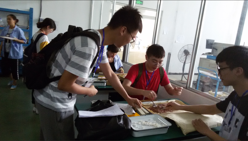 在听完校外专家课后,同学们分为两组,实地亲身参与产品生产。一组首先前往电子陶瓷部体验生产流程。在技术人员的带领下,进入半导体致冷器生产车间动手制作产品,并跟随工作人员学习检测方法。另一组前去机电装配车间进行动手实践,在工作人员的指导下,进行简单的机电元件装配工作。同学们开展了竞速比赛,整个过程快乐有趣而又充满意义。同学们既培养了自己的动手能力,又感受到了一线工人的辛苦,还加深了对于电子陶瓷制作工艺及机电元件结构的了解。