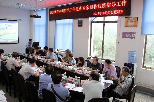 根据学校关于本科教学审核评估工作相关部署安排,2018年6月27日上午9时,以郑煜教授为组长,双一流办副主任孙克金为负责人,伍登学教授、李长松教授、徐家品教授教授、何勤教授、韩海军教授、余徽教授、教务处贾舜宸副科长的专家组一行对永利集团官网本科教学审核评估工作进行了检查,学院党委书记尹光福,院长刘颖,党委副书记张晓满,副院长吴家刚、林江莉,各系主任,教师代表,学生代表以及教学管理人员参与了此次审核评估。