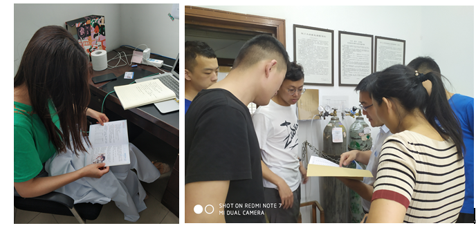 同时,在检查过程当中,向同学们分发了《3044am永利集团3044noc实验室安全知识小手册》,向相关师生强调了实验室安全生产有序进行的重要性和必要性。告诫在实验室的同学们,要克服炎热天气的影响,做好个人实验室安全防护工作,强调开展实验时要根据实验情况选择合适的防护服、护目镜、口罩等防护用品;禁止穿短裤、短裙、露脚面凉鞋进入实验室;女生长发须扎好盘起,努力做好实验室安全工作。