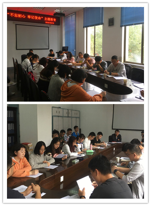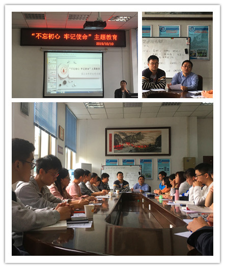 习近平总书记在党的十九大上掷地有声地讲到“共产党人的使命,就是为中国人民谋幸福,为中华民族谋复兴”。适逢中华人民共和国成立70周年,不忘初心尤为重要,牢记使命方能再创辉煌! 10月10日中午12时45分,在学院会议室,3044am永利集团3044noc副院长吴家刚教授以“不忘初心,牢记使命”为题为望江本科党支部全体党员上主题党课,会议由支部书记余鹏飞老师主持。
