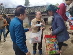 随后扶贫帮扶工作小组分成两组,由尹书记和张书记分别带队走访慰问了永利集团官网对口帮扶的14户贫困户。金秋时节秋色宜人,山间蒙了一层薄雾,青山绿水间属于秋日独有的彩林若隐若现,错落而富有色彩及民族特色的民居显得额外好看,村民热情地与大家寒暄。扶贫小组深入到每一户贫困户家中,送去了文具及日常清洁等用品,帮助他们打扫卫生、整理内务,并围绕“两不愁三保障”的脱贫攻坚目标,细致了解了他们近期子女上学、卫生健康、教育医疗保障、“三建四改”、务工务农、种植养殖等情况,宣传党和学校的扶贫方针政策,着重讲解了教育医疗保障制度。交谈中,老乡们表达了对国家、学校、学院帮扶工作的感激之情,也表示对未来更加美好的生活充满信心和期望。帮扶小组反复告诉他们健康和教育的重要性,希望他们一定要重视小孩的教育,并注重环境卫生,保持健康,并鼓励他们克服困难,在各项帮扶政策的帮助下通过勤奋努力创造更美好的生活。