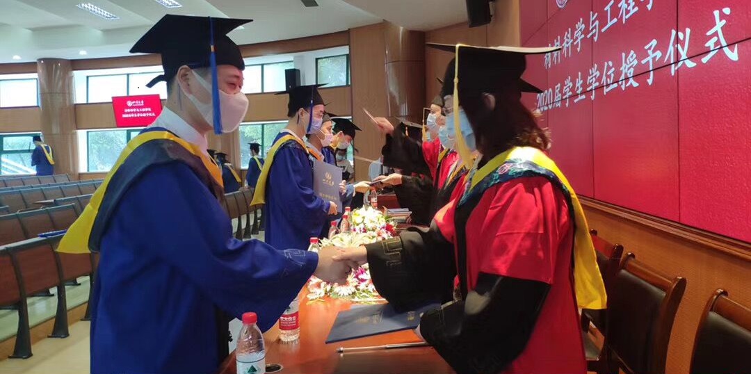 接着,刘颖院长发表了题为《不忘初心使命,终成时代雄”材“》的毕业致辞,刘颖院长首先向学院2020届全体毕业生表示衷心的祝贺,对辛勤培育学生的各位老师表示诚挚地感谢。而后,刘院长勉励全体毕业生,在纷繁复杂的环境中,作为一名川大人,要坚定理想信念,勇担社会和家庭的责任;作为一名材料人,要牢记使命担当,为国家贡献自己的智慧和力量,为中华民族的伟大复兴而努力奋斗。