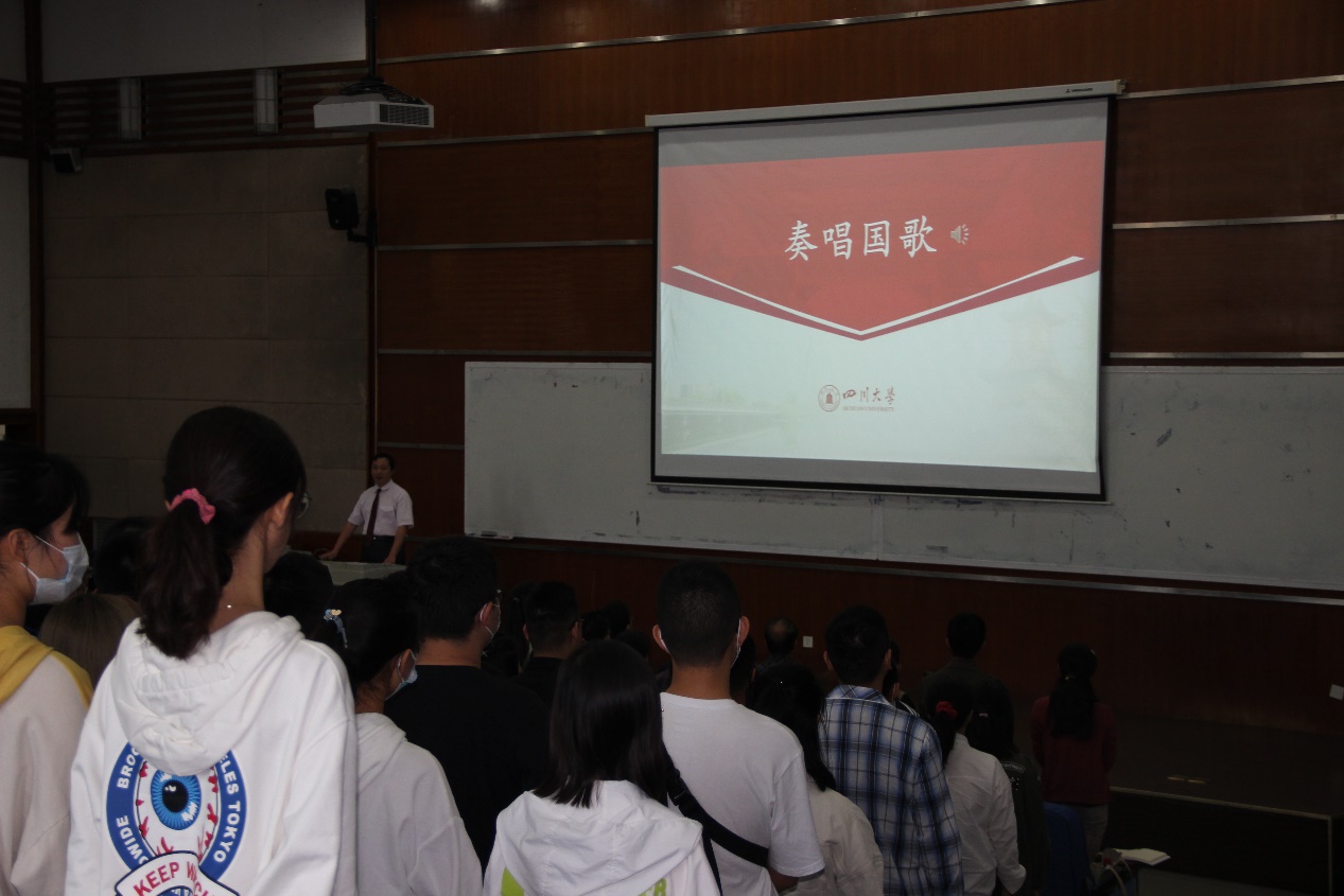2020年9月21日下午4:30,3044am永利集团3044noc2020级本科生开学典礼在江安校区综合楼C座407隆重举行。学院党委书记蒋青教授、院长刘颖教授、党委副书记张晓满教授、副院长吴家刚教授、院长助理叶金文教授、朱小红教授、新能源材料系系主任张云教授、教导员刘蓉生高级工程师、班主任文晓刚教授﹑朱基亮教授﹑杨为中教授﹑黎兵教授﹑李军研究员﹑杨晓娇副研究员﹑施奇武副研究员﹑张文副研究员﹑陈金伟副研究员﹑黄利武副研究员﹑教师代表郑婷、党政办主任王志超、教学科研科科长2020级学籍员刘丽娟、团委书记2020级辅导员余鹏飞、2019级辅导员王静和全体2020级本科生出席开学典礼,典礼由张晓满副书记主持。在庄严的国歌声中,开学典礼正式拉开帷幕。
