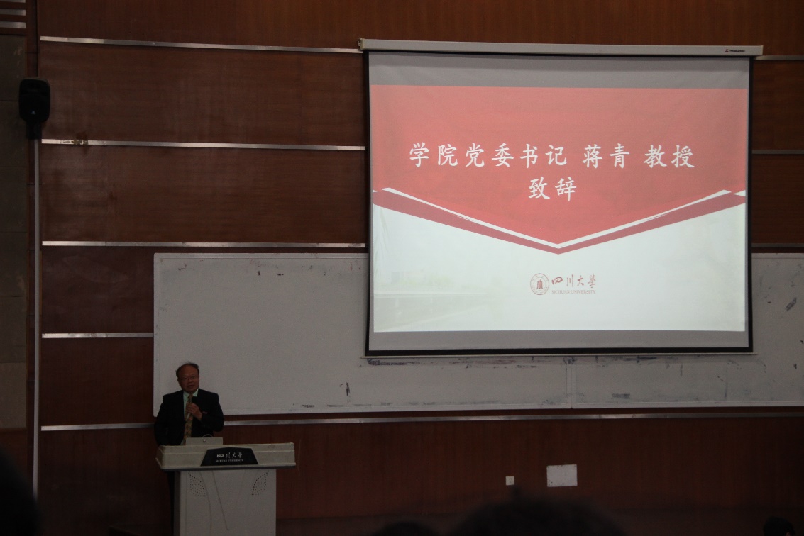 首先,学院党委书记蒋青教授代表学院全体教职员工向2020级新同学的到来表示热烈的祝贺和欢迎,向全体新生提出四点希望和要求,勉励同学们立大志﹑强学习,勇做新时代的追梦人。