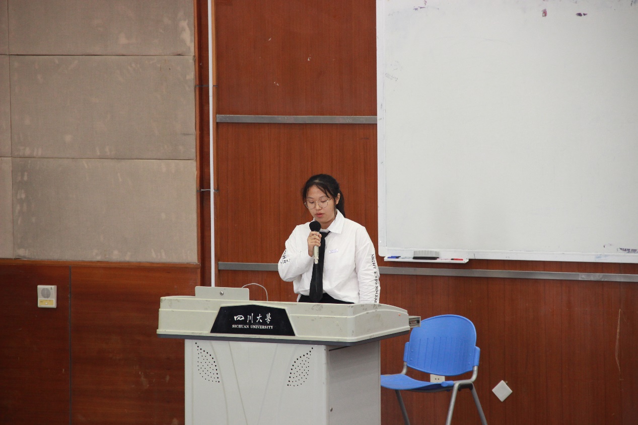 随后,教师代表郑婷副研究员发表教师感言,郑婷老师从自己“本—硕—博的川大材料”学习成长经历出发,鼓励同学们不负光阴﹑勤奋学习,在学习科研的道路上大胆探索﹑去伪存真。