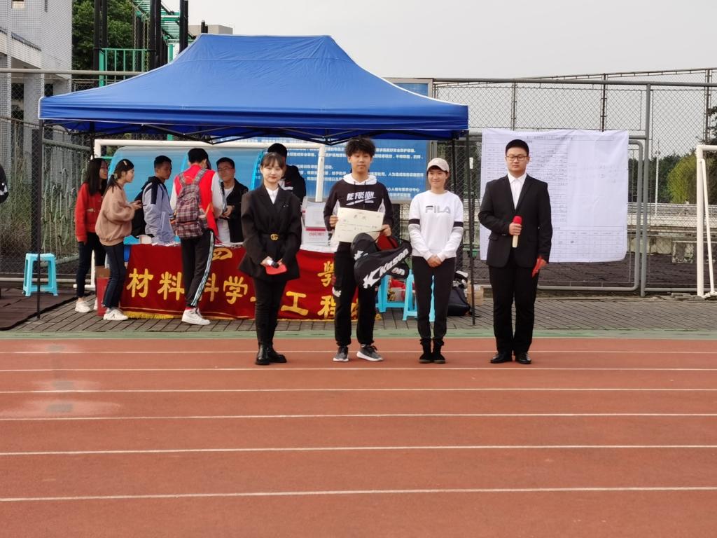 比赛结束后学院辅导员及团委主要干部为夺冠集体及获奖运动员们颁发奖状及奖品。