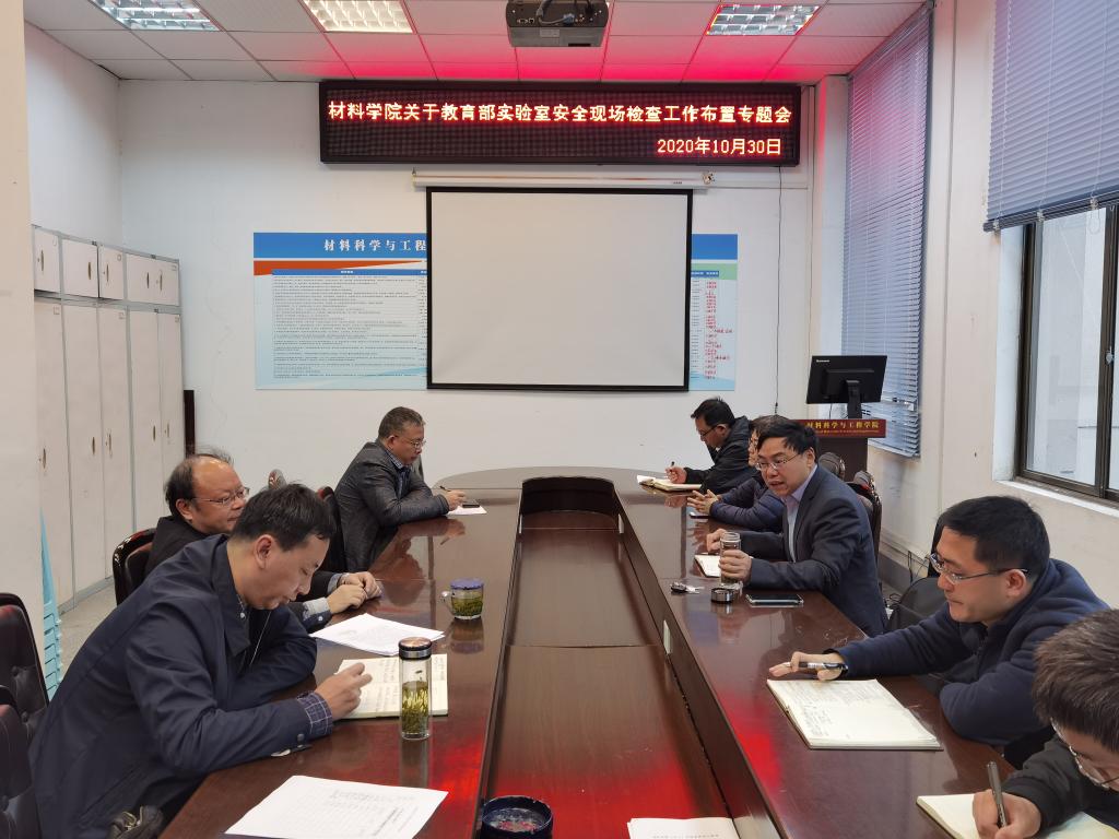 为了认真贯彻落实学校相关会议精神,10月30日上午8时30分在材料科学与工程学院在学院会议室召开了关于实验室安全检查工作布置的专题会,党委书记蒋青教授、院长刘颖教授、党委副书记张晓满教授、副院长吴家刚教授、工会主席武莉莉教授和各实验室主任参加了本次会议。