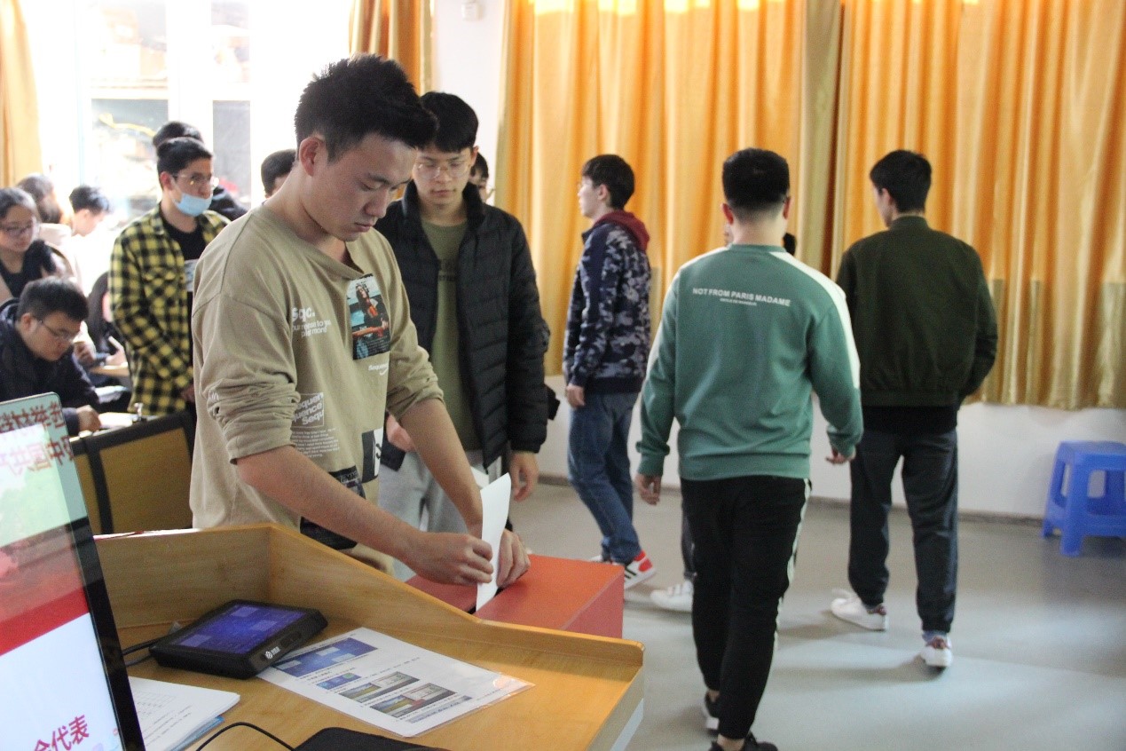 大会第二阶段是选举产生新一届共青团3044am永利集团3044noc委员会委员和新一届校团代表。首先,主持人详细介绍了候选人的基本信息;而后,代表们充分酝酿并投下庄严的一票。