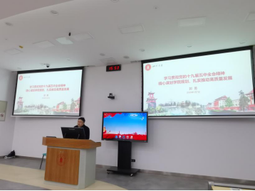 郭勇教授紧扣党的十九届五中全会主题,围绕党的十九届五中全会概况和主要框架,全会的重大意义、2035年远景目标和“十四五”时期我国发展的主要目标、重点任务,全会提出的一系列新的重要思想、重要论断、重大举措,从新阶段、新理念、新征程的视角对教育、科技、文化等工作的重大部署等方面进行宣讲解读。