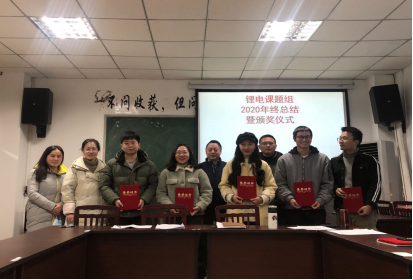 同时锂电课题组的各位硕、博士研究生就自己在2020学年的学习、工作和生活进行了简要总结,课题组的吴昊老师、王倩老师和陈显春老师也从科研成果、组内工作、人才培养等方面进行总结发言并评选出了2020年度先进个人。张云教授作总结讲话,2020年是极不平凡的一年,在党和国家的领导下我们战胜了疫情同时取得了可喜的成绩,希望2021年是一个崭新的开端,相信在新的一年里各位老师和同学能够再接再厉,开拓创新,再创辉煌。