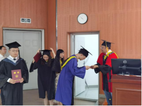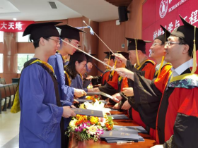 2021届毕业生依次走上主席台,接受学院领导颁发的毕业证书、学位证书,以及“拨穗礼”。