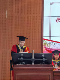教师代表周大利教授发言,嘱咐毕业生们不忘母校恩情,谨记校训,努力工作,为社会贡献力量,同时要学会爱与责任,学会忘记、懂得坚持,拥有健康的身心。