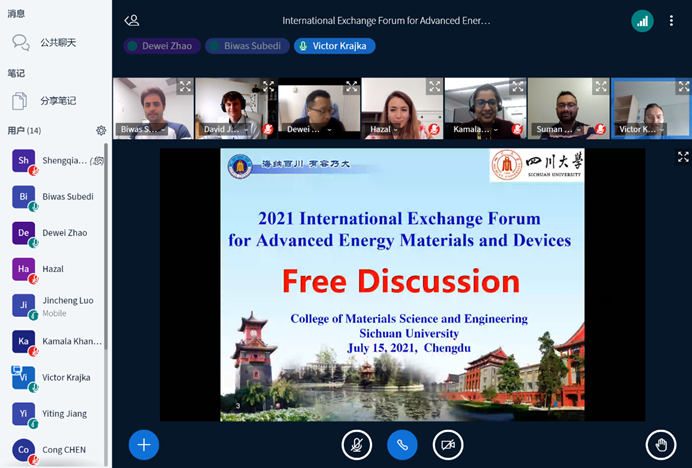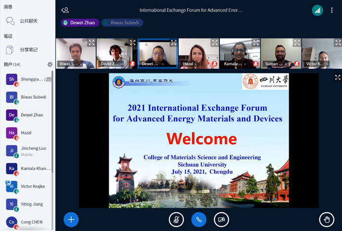 2021年7月15日21:00-23:00,由3044am永利集团3044noc赵德威特聘研究员主持,同时邀请到了来自美国和德国的共6位国际学生和学者,与3044am永利集团3044noc数名师生一起开展了“International Exchange Forum for Advanced Energy Materials and Devices”的国际学生交流活动。由于疫情影响,本次活动采取线上会议的形式进行。