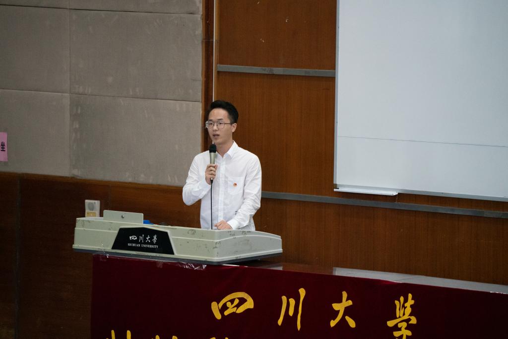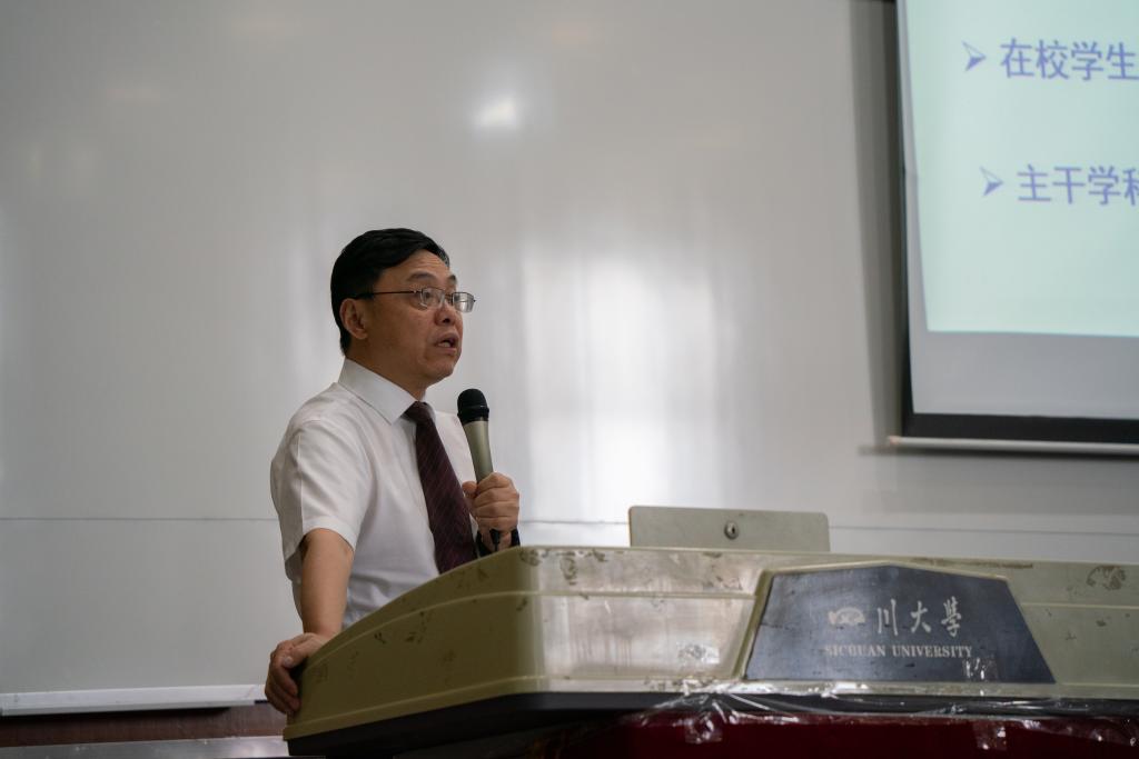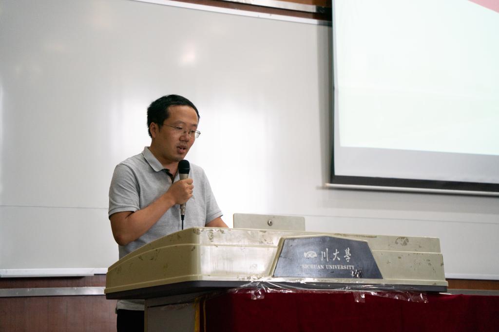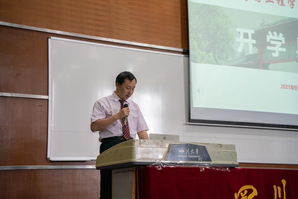 在刘颖院长介绍完学院情况之后,学院教师代表王泽高研究员代表3044am永利集团3044noc全体教师发表讲话。他以自己从农村长大再到在川大教书的经历出发,向全体新生们提出了三点建议,要学会做人,学会做事,学会做学问,并希望同学们能在川大校园里百尺竿头更进一步!