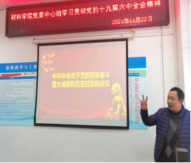 刘颖就认真彻落实十九届六中全会精神,全面加快学院发展分享了学习体会。他指出,学院要着力突出高层次人才队伍建设,高水平科学研究,培养爱岗敬业、刻苦钻研的高素质科研团队。全院上下要认真学习贯彻落实党的十九届六中全会精神,与自身本职工作相结合,高质量完成今年的各项重点工作。
