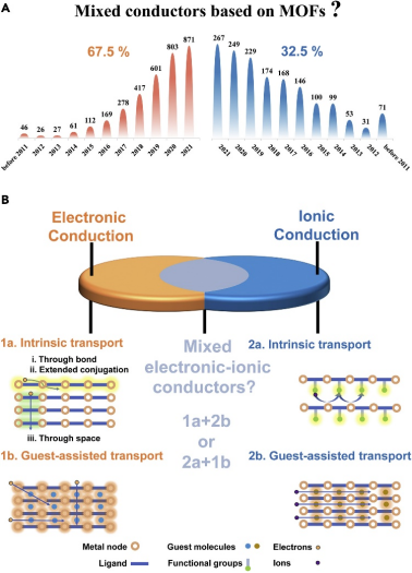 图1 基于金属有机框架主客体结构的混合电子/离子导体(Matter, 2022, 5, 772-774)
