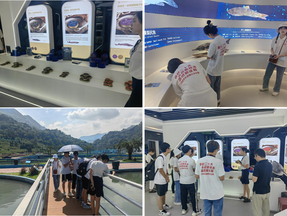 7月3日下午,实践团队赶赴天全县依次参观了四川尔润玄武岩纤维科技有限公司﹑天全福鞍碳材料科技有限公司和四川润兆渔业有限公司。在工作人员的介绍下,实践团队了解到这三家公司都是依靠天全县的自然资源和地理生态优势发展起来的,既有本地企业也有引进企业。尤其是四川润兆渔业有限公司,因天全境内的思经河水质优良、水量充沛,水温常年在4-23℃,大力发展鲟鱼养殖业,成为了全国第二大的鱼子酱产出基地,不仅“养”出了名气,更是为村民搭建了致富之路。