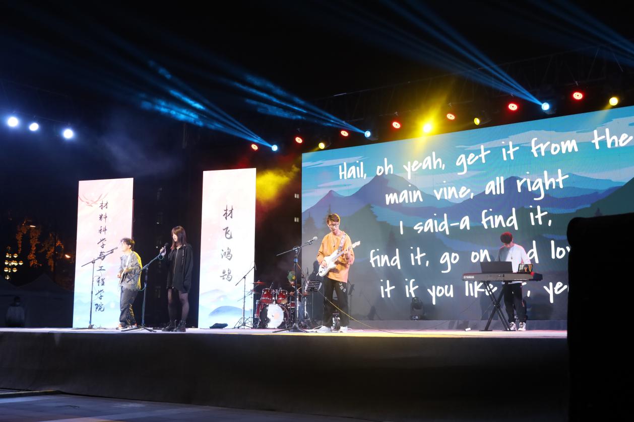 Voodoo Chile乐队精心策划的《开心往前飞 + come and get your love》满足了同学们记忆深处最细腻的情绪,让每个人“high”了起来;陈毅文带来的脱口秀《锻炼与体测》可谓是“笑”果拉满,将气氛推上了又一高潮。《平凡》的舞台酿造了一壶温润悠长的酒,不怕巷深路远,深情之声饱含对崇高英雄与人间大爱的赞美;而众人朗诵《我深爱的祖国》更是字字珠玑、赤子热血。