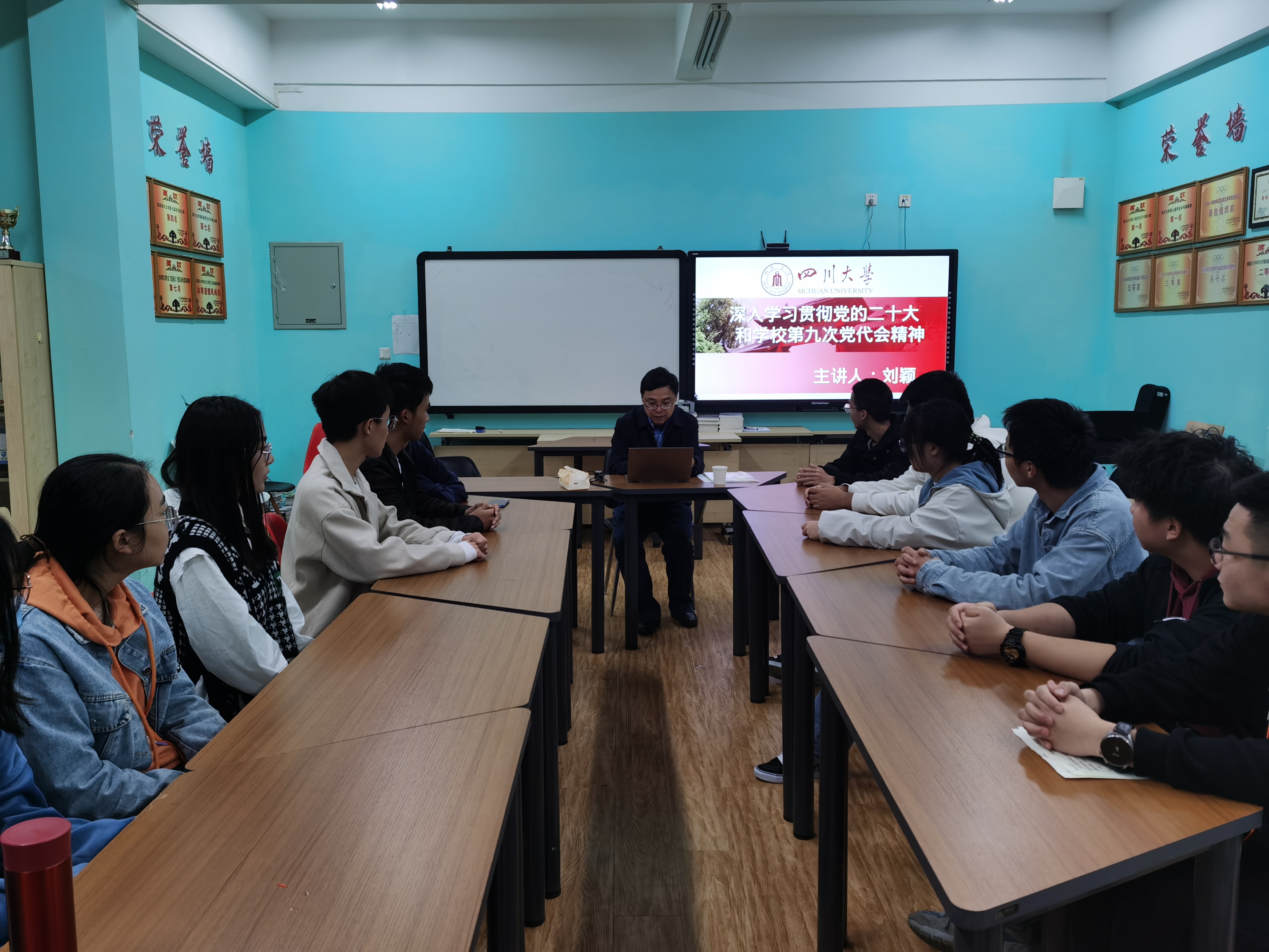 刘颖院长和徐海鑫书记分别于11月9日、11月18日前往江安校区,在江安校区西园一舍活动室为党员、入党积极分子和主要学生干部讲授了专题党课。