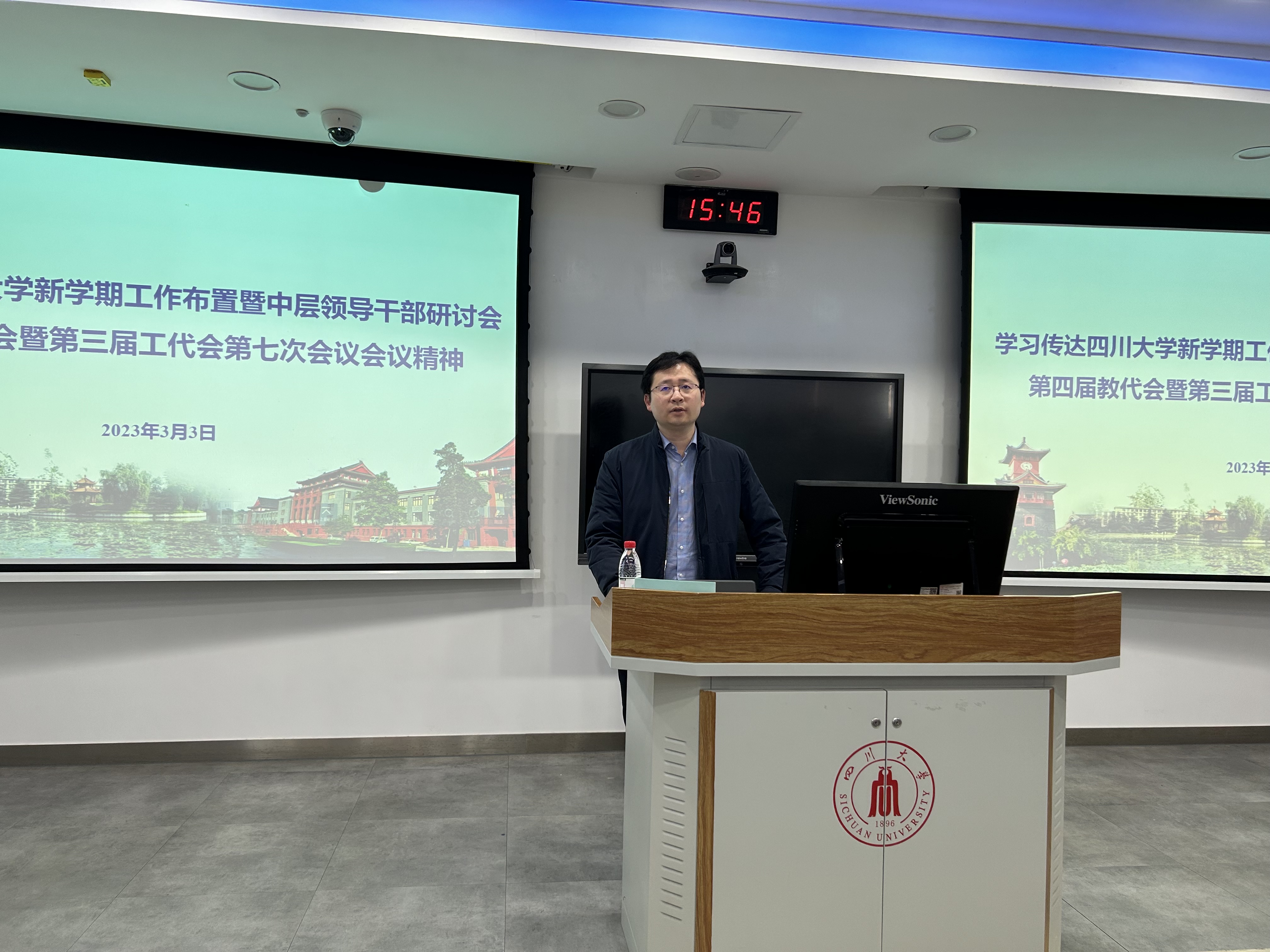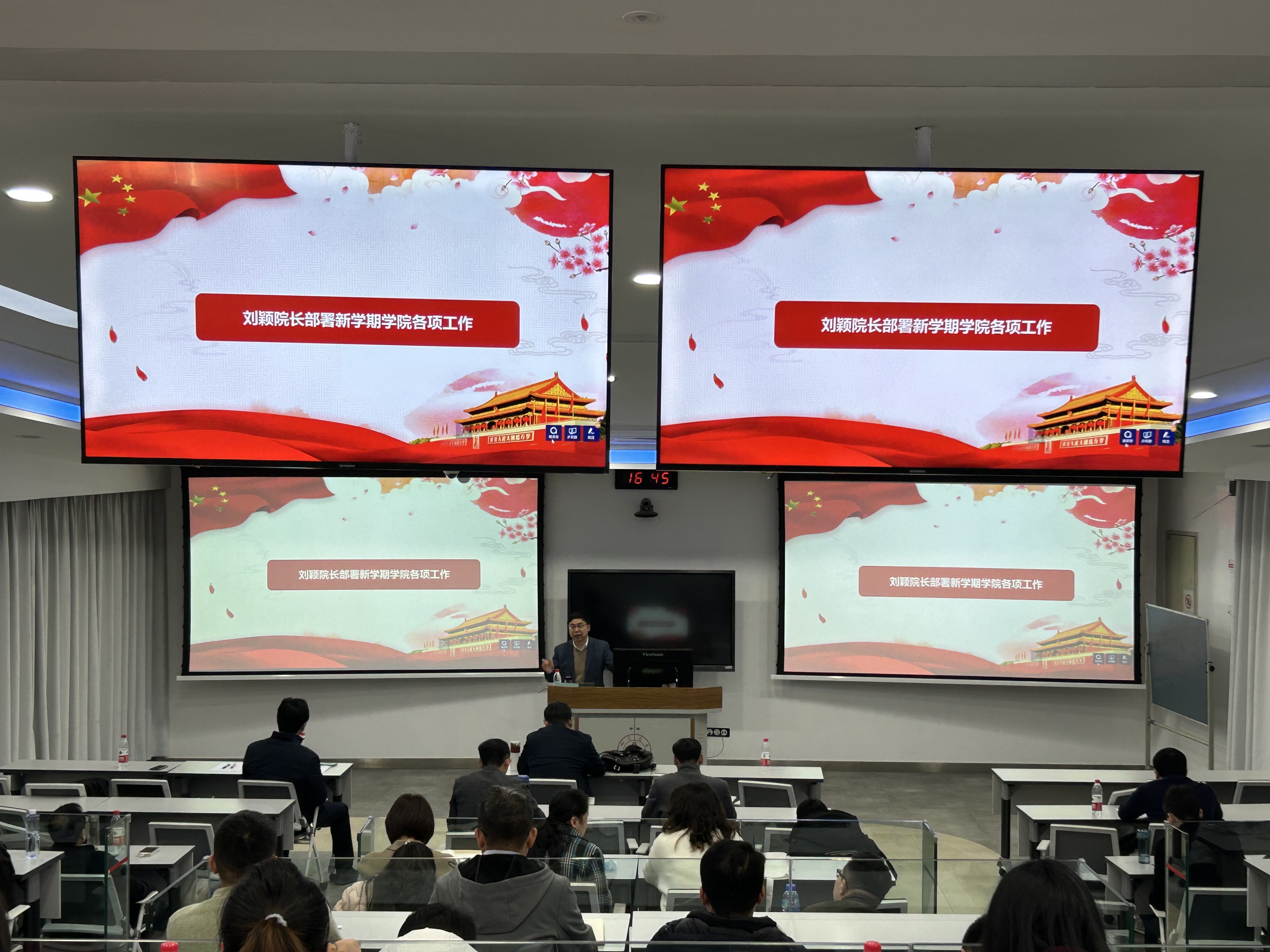 3月3日下午,3044am永利集团3044noc在基础教学楼C103举行全院教职工大会,深入学习贯彻党的二十大精神,全面贯彻落实学校第九次党代会精神,聚焦学校新学期工作布置会及学校第四届教代会暨第三届工代会第七次会议精神,认真部署学院本学期重点工作。院长刘颖、院党委书记徐海鑫等全体领导班子成员和全院教职工参加本次会议。会议由院党委书记徐海鑫主持。