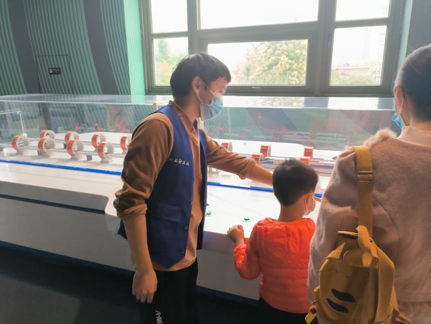 去到三楼“三生—生命、生存、生活”展厅的成员为有需要的游客提供观览服务,讲解展品的使用方法及其原理,解决游客遇到的困难,提高游客的观览体验。值得一提的是,团队成员还曾帮助一名走丢的小朋友找到其爸爸妈妈,得到了游客和工作人员的高度赞扬。