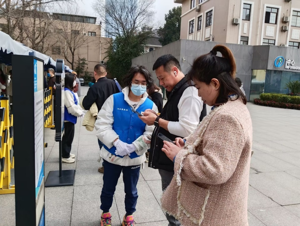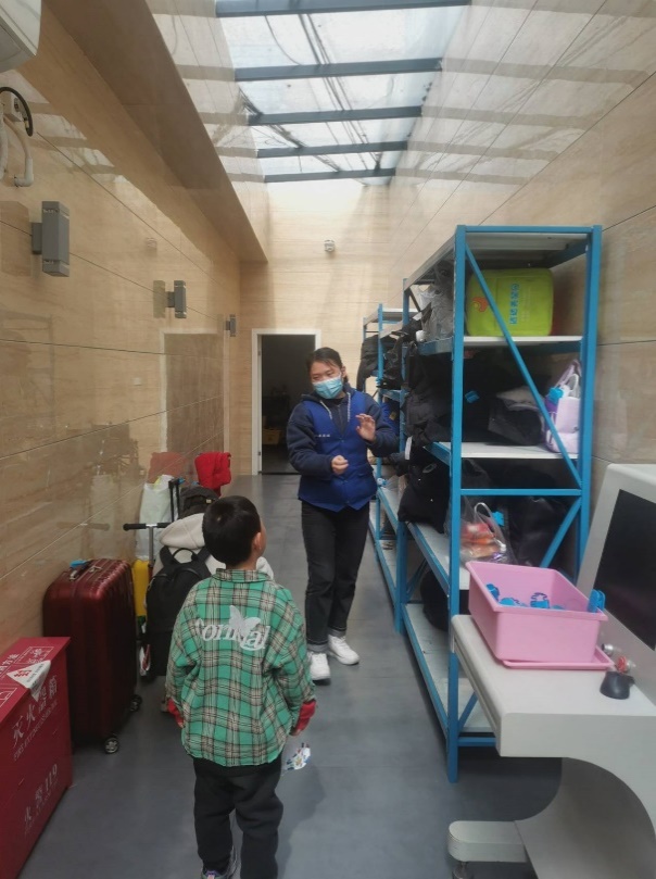 一楼前台的成员为科技馆观众提供线下、线上咨询服务,包括入馆预约、特殊人群入馆方式咨询、馆区活动以及公共设施服务咨询等,同时为观众提供行李寄存服务,帮助科技馆工作人员维持入口处的秩序,解决游客在预约入馆过程中遇到的问题。