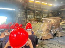 之后,同学们在二重老师及技术人员的带领下依次参观了铸锻公司热处理厂、核电石化公司、铸锻公司炼钢厂、万航公司模锻厂,铸锻公司铸锻造厂、检测中心、 重机公司齿轮厂、重机厂以及金结厂等。同时,在二重技术人员的讲解中学习了相关产品的生产工序原理及流程。