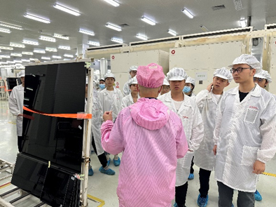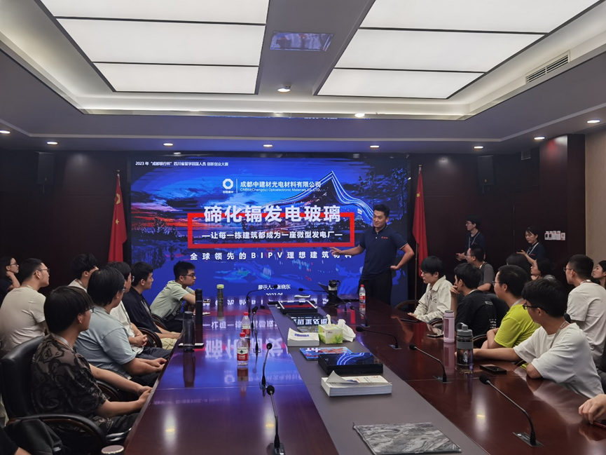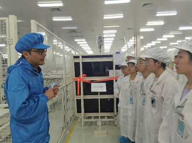 公司肖镇林工程师在公司大楼展厅为同学们讲述了公司的发展历程,之后罗润工程师带领大家参观了碲化镉发电玻璃生产线,让同学们对公司文化、成果、碲化镉发电玻璃产品及应用等有了更直观和深刻的认识。