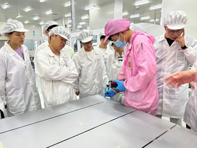 公司张晓东工程师、樊建平工程师、李银前工程师等向同学们分别介绍了BIPV(光伏建筑一体化)碲化镉发电玻璃项目、生产线、质量检测等相关内容。
