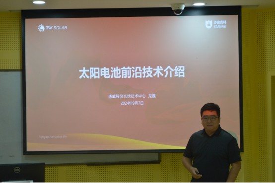 世界光伏龙头企业研发部部长龙巍博士就“太阳电池前沿技术介绍”为题作主旨报告。报告简要介绍了光伏产业的发展趋势,从太阳电池的基本原理和损失机制的角度,讨论了晶硅太阳电池结构和设计的优化,以及未来前沿技术的发展方向。介绍了通威全球创新研发中心布局了涵盖几乎所有太阳能电池、组件主流未来技术,各技术研发齐头并进,加快研发、中试和量产转移的周期,有助于通威抓住技术迭代的机遇,让公司在千帆竞发的技术变革中抢占先机。
