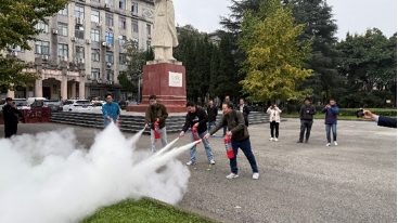 消防教官还面向教师和学生协防员详细讲解了消火栓、报警器、灭火器等消防器材的使用方法和操作要点,并进行了灭火器实际操作演练。