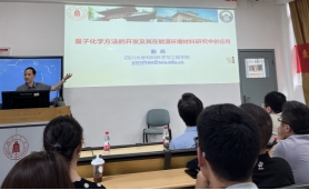 在主题党日活动之前,新能源教研中心特别邀请了学院赵焱老师开展题为《量子化学方法的开发及其在能源环境材料研究中的应用》主题交流报告。赵焱老师结合自己的科学研究经历和在理论计算化学与计算材料学等领域取得的成就,为大家介绍了M06密度泛函方法的发展背景以及被国际知名学者使用的情况,并介绍了基于高精度电化学数据库在多硫化锂锚固、催化转化材料理论分析、合金修饰层设计与界面反应动力学模拟、过渡金属配位化合物催化剂筛选与性能描述符构建等方面的最新应用。通过本次学术讲座,使师生们深刻认识到借助专业的材料设计方法和AI辅助策略,对于开发新材料、研制新器件的重要性。