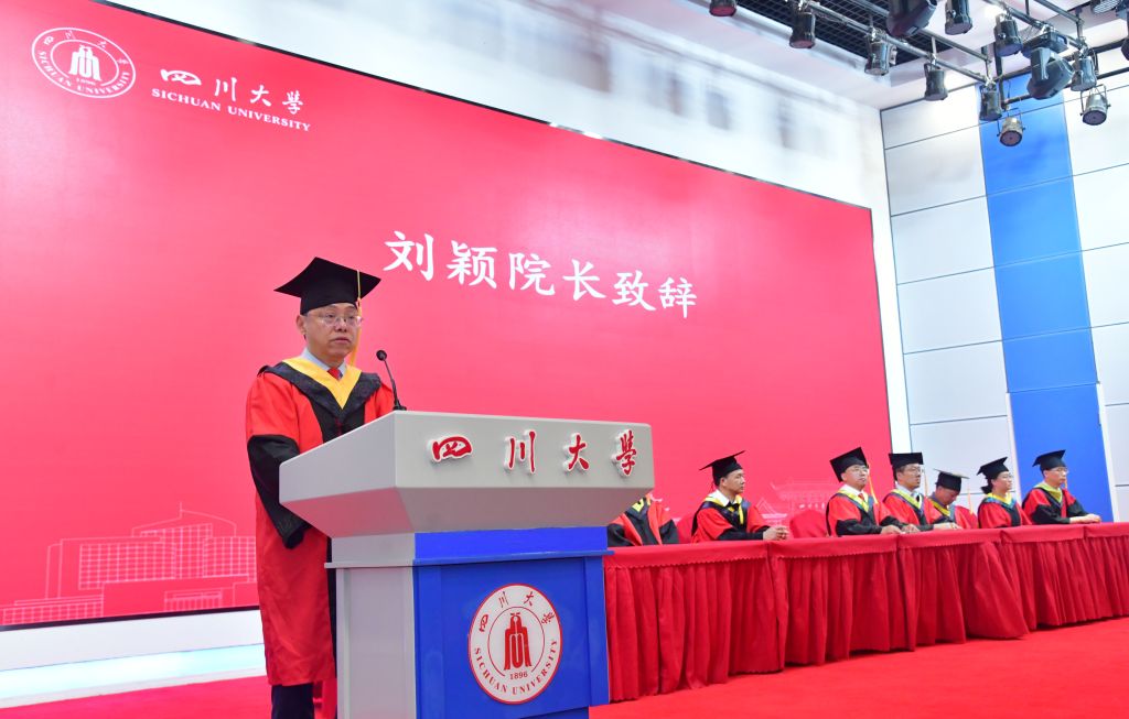 首先由院长刘颖致辞,他寄语毕业生们,时光荏苒,同学们的成长画卷在川大徐徐展开,也即将迎来扬帆远航。刘颖院长送给同学们三句话:胸怀国之大者,永保赤诚之心;矢志创新奋斗,勇攀科技高峰;身怀感恩之心,砥砺高尚品格。最终祝愿同学们知行合一、德才并进,胸怀材料报国的理想,以梦为马不负韶华。
