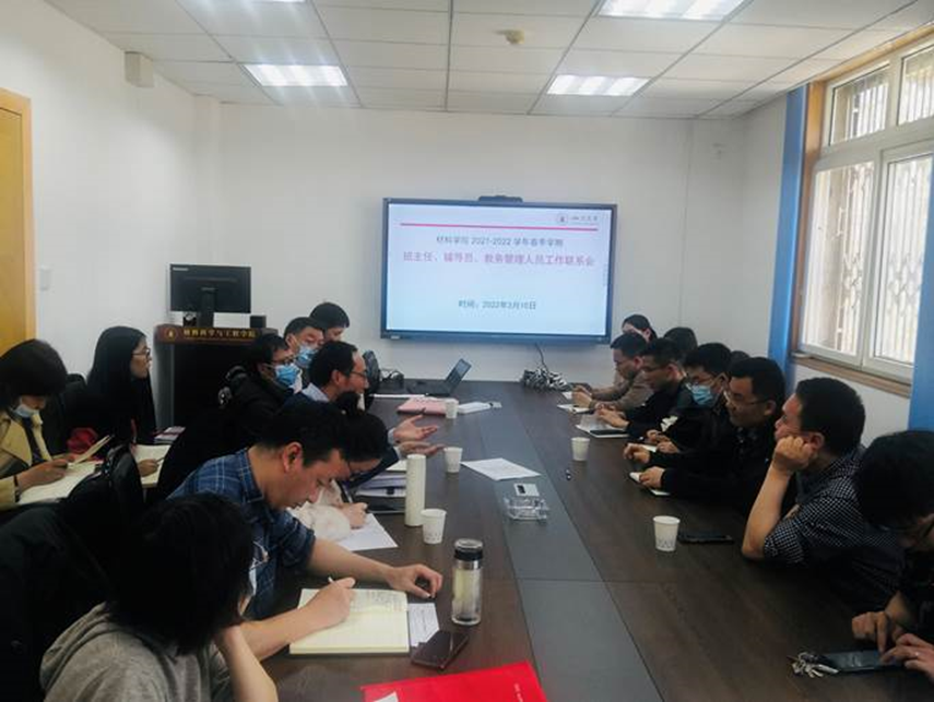 开学伊始,为贯彻全国高校思想政治工作会议精神,强化立德树人工作,更好发挥教师对学生发展、成长成才的指导作用,提升班级管理水平,增强班级管理工作的针对性和时效性, 3月10日下午3:00,3044am永利集团3044noc新学期班主任、辅导员、教务管理人员工作联系会在学院会议室召开,党委副书记张晓满教授,副院长叶金文教授,2020级和2021级班主任、辅导员、教务员参加了此次工作会,会议由叶金文教授主持。