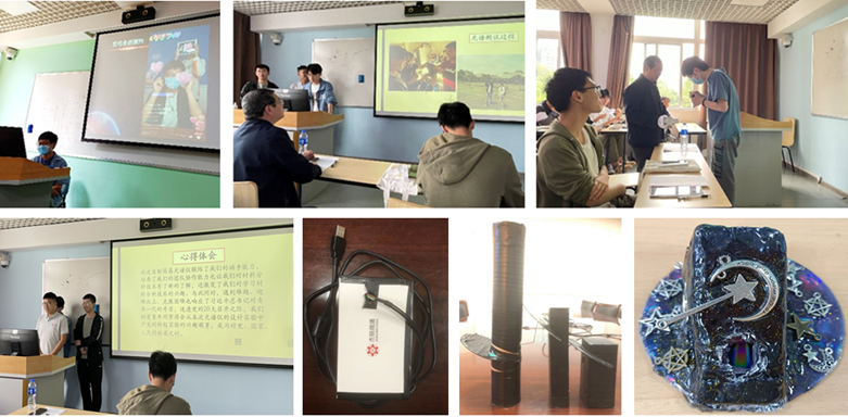 上月,该课程举行了颇具特色的中期过程考核教学活动—利用身边废弃物自制光谱仪。各小组通过直播带货、动画播放、PPT放映等多种形式讲解了光谱仪的原理、制作过程以及观测结果,并展示了精心设计的实物,交流了心得体会。材料分析技术2班潘同学、丁同学和刘同学提到:“在自制光谱仪的过程中遇到了不少问题,但是我们迎难而上、克服困难,从本次光谱仪的设计实验中产生了对科创实验的兴趣萌芽,我们积极响应习近平总书记对青年一代的号召,努力成为对党、国家和人民有用的栋梁之材。”